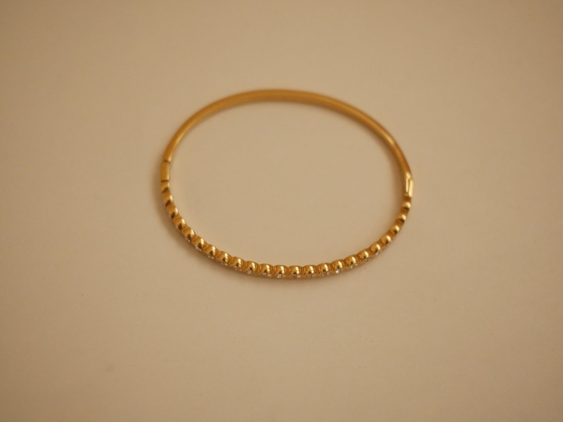 Le bracelet Éclat Doré LYDIA illumine votre poignet avec ses fines pierres scintillantes. En acier inoxydable doré, il résiste à l’eau et reste éclatant au fil du temps.